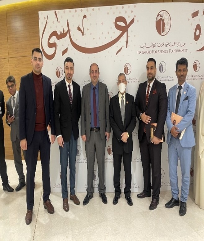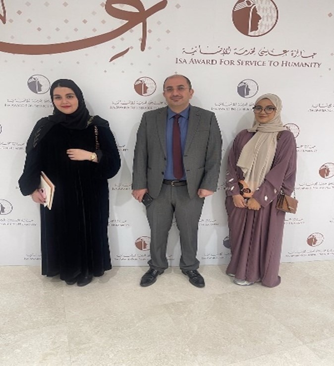 Gulf University presented by Prof. Mohanad Ismael Ibrahim Al Fira, the president of Gulf University, Dr. Zuhair, Dr. Mohammed Dawwas, Dr. Mohammed, Dr. Tamer and Dr. Mujeeb attended the event of Isa award for service to humanity. This prize is to recognize individuals or organizations who have made significant contributions to the service of humanity. The award aims to promote and encourage humanitarian work, and to highlight the importance of social responsibility and philanthropy.