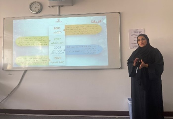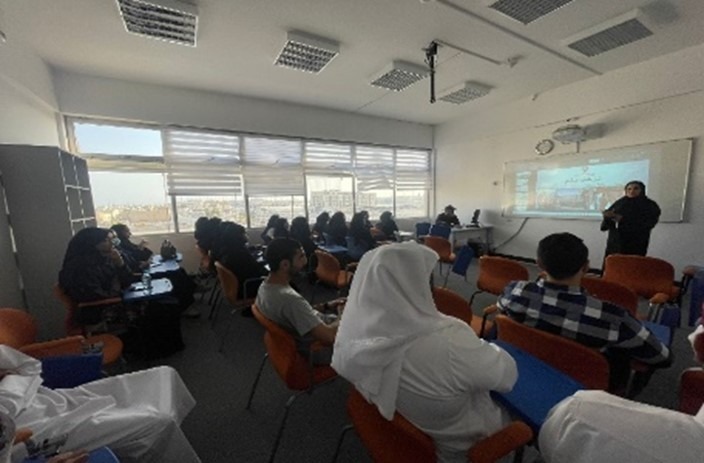 As part of the Community Engagement Centre’s initiatives at GU, the CE Centre collaborated with the Faculty of Administrative & Financial Sciences to organize a lecture titled “Parental Care, Prevention, Protection, Sustainable Development, and Humanity Relief of the Royal Humanitarian Foundation.” The lecture, presented by Neila Fouad Al-Shaer, took place in the main building on December 6, 2022. It focused on highlighting the responsibilities and activities undertaken by the Royal Humanitarian Foundation in the areas of parental care, prevention, protection, sustainable development, and humanity relief.